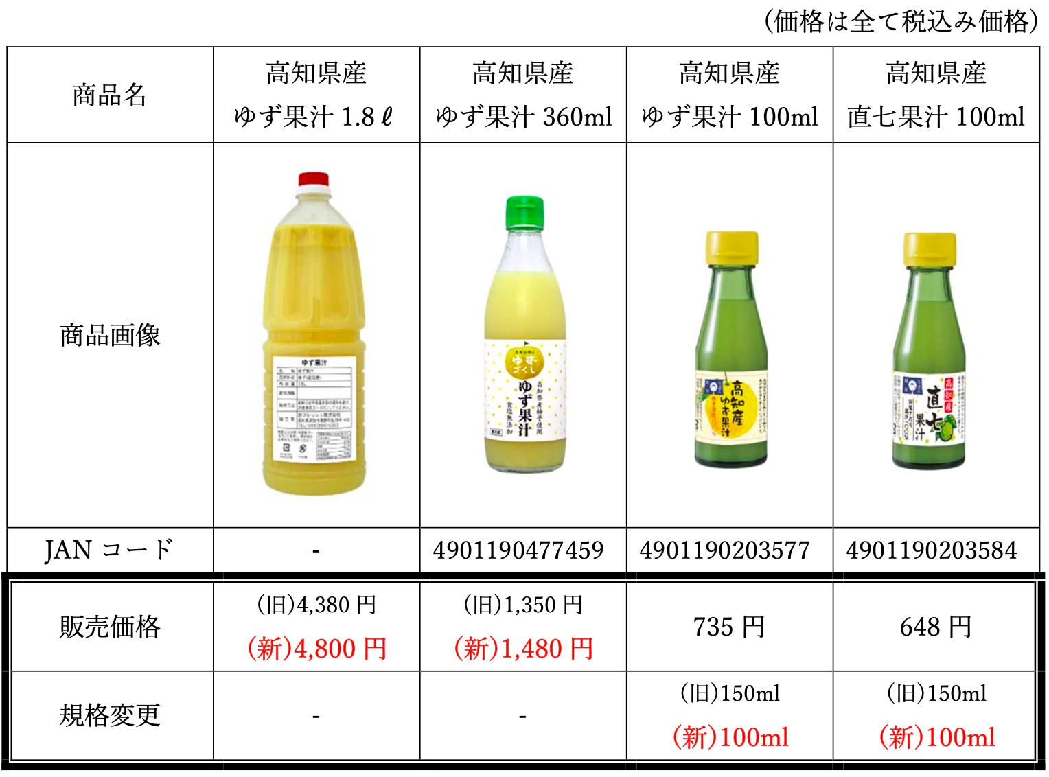 原料不足の為一時休売しておりましたゆず果汁及び直七果汁につきまして、 供給体制が整いましたので、12月より販売を再開いたします。 お客様には⻑らくお待たせいたしましたことを、深くお詫び申し上げます。